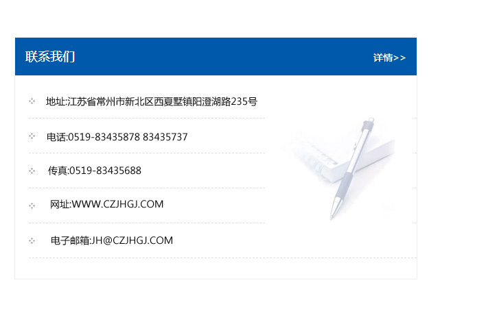 傳真:0519-83435688    郵編:213135    網址:WWW.czjhgj_com.szdiaosudaoju.com    電子郵箱:JH@czjhgj_com.szdiaosudaoju.com
